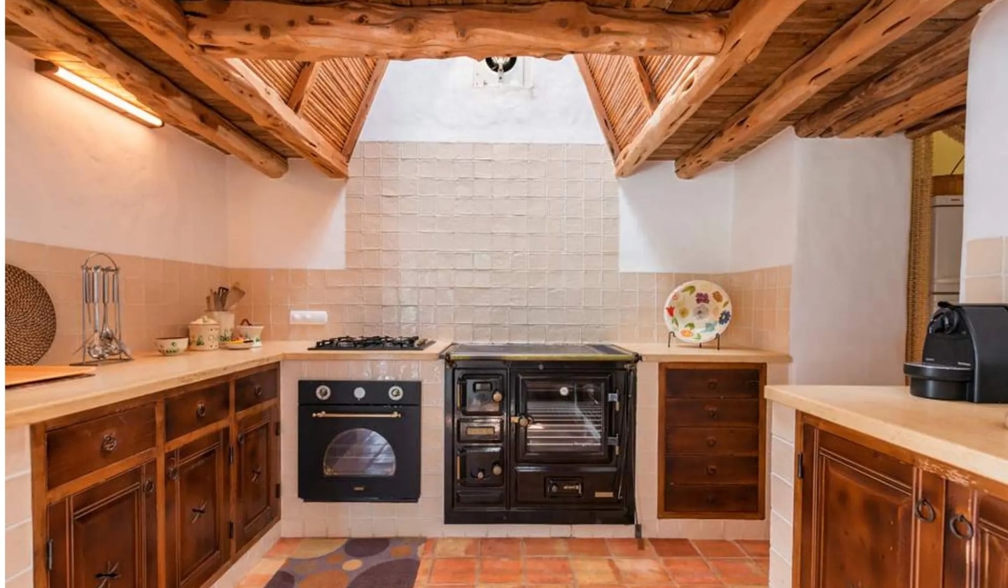 Durch einen der beiden Eingänge gelangt man in einen offenen Wohnbereich, in dem sorgfältig ausgewählte Möbelstücke ihre eigene Geschichte erzählen. Familienerbstücke und restaurierte Antiquitäten füllen die Räume und schaffen eine authentische Atmosphäre. Die mit modernen Geräten ausgestattete Küche öffnet sich zu einer vorderen Terrasse, die von einer Weinlaube geschützt wird. Ein kleinerer Wohnbereich ist mit dem Essbereich verbunden, sodass ein harmonischer Raum entsteht, der zur Gartenterrasse führt.