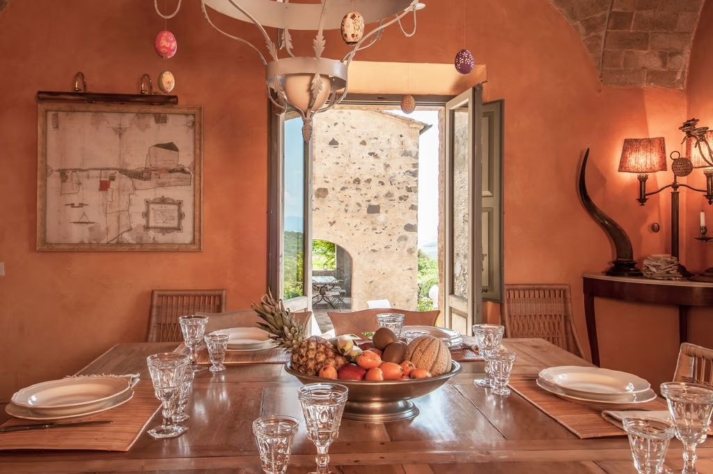 Das Anwesen ist flexibel in seiner Größe und bietet Platz für bis zu 10 Gäste im Haupthaus oder 16 Gäste, wenn die drei Schlafzimmer des Gästehauses mitgezählt werden. Die einzigartige Terrasse mit Blick auf die Landschaft ist der natürliche Treffpunkt für Mahlzeiten und so positioniert, dass sie sowohl das Morgenlicht als auch die Abendbrise einfängt. Der Designhintergrund des Eigentümers zeigt sich in jedem durchdachten Detail, von der Platzierung der Möbel bis zur Auswahl natürlicher Materialien, die die toskanische Landschaft widerspiegeln.