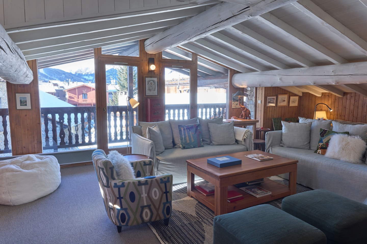 Das Wohnzimmer ist der perfekte Treffpunkt nach einem Tag auf der Piste. Mit seinem funktionierenden Kamin, dem Zugang zum Balkon und einer Mischung aus traditionellen und modernen Möbeln ist es der ideale Ort, um den Abend ausklingen zu lassen. Die Wohnung verfügt über WLAN, SMART-TV, Haartrockner und einen Skischrank. Dank der Lage in der Altstadt sind Restaurants, Geschäfte und die Lifte nur wenige Schritte entfernt, und Sie profitieren vom Charme des ursprünglichen Viertels von Val d'Isère im Gegensatz zu den neueren Siedlungen.