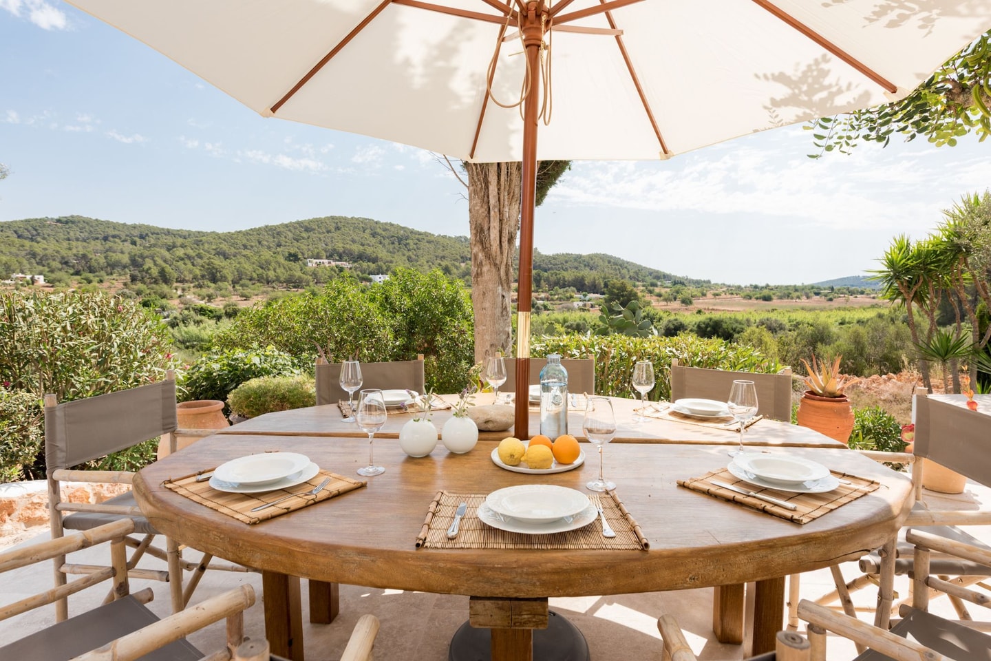 Can Brada emerges at the end of a quiet cul-de-sac, where complete privacy meets thoughtful design. This authentic finca underwent a meticulous renovation in 2018 under Blakstad's careful eye, transforming an already special property into something rather remarkable. Valley views stretch in every direction from this peaceful spot, just five minutes from Santa Gertrudis village.