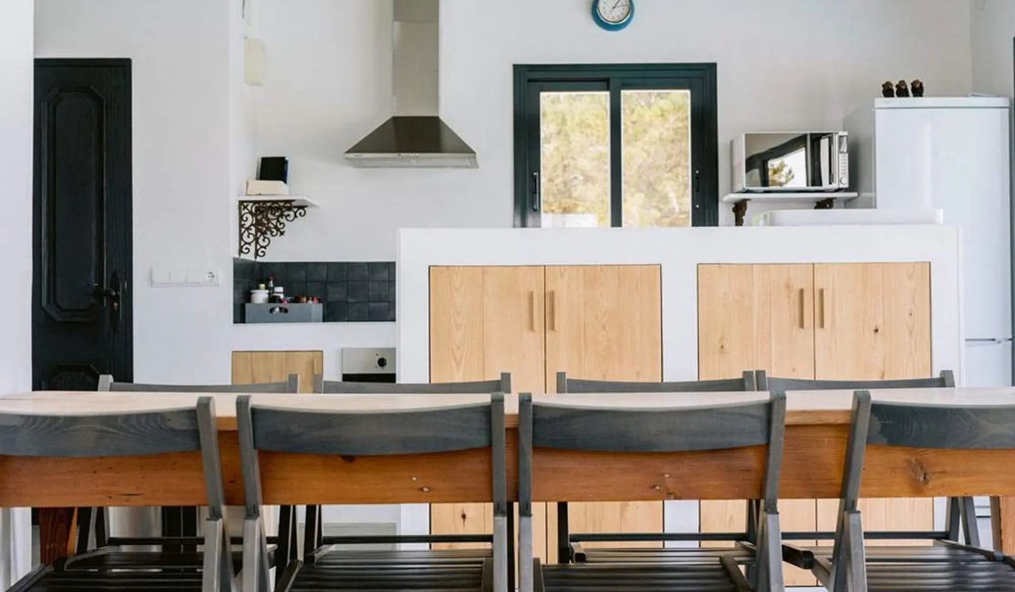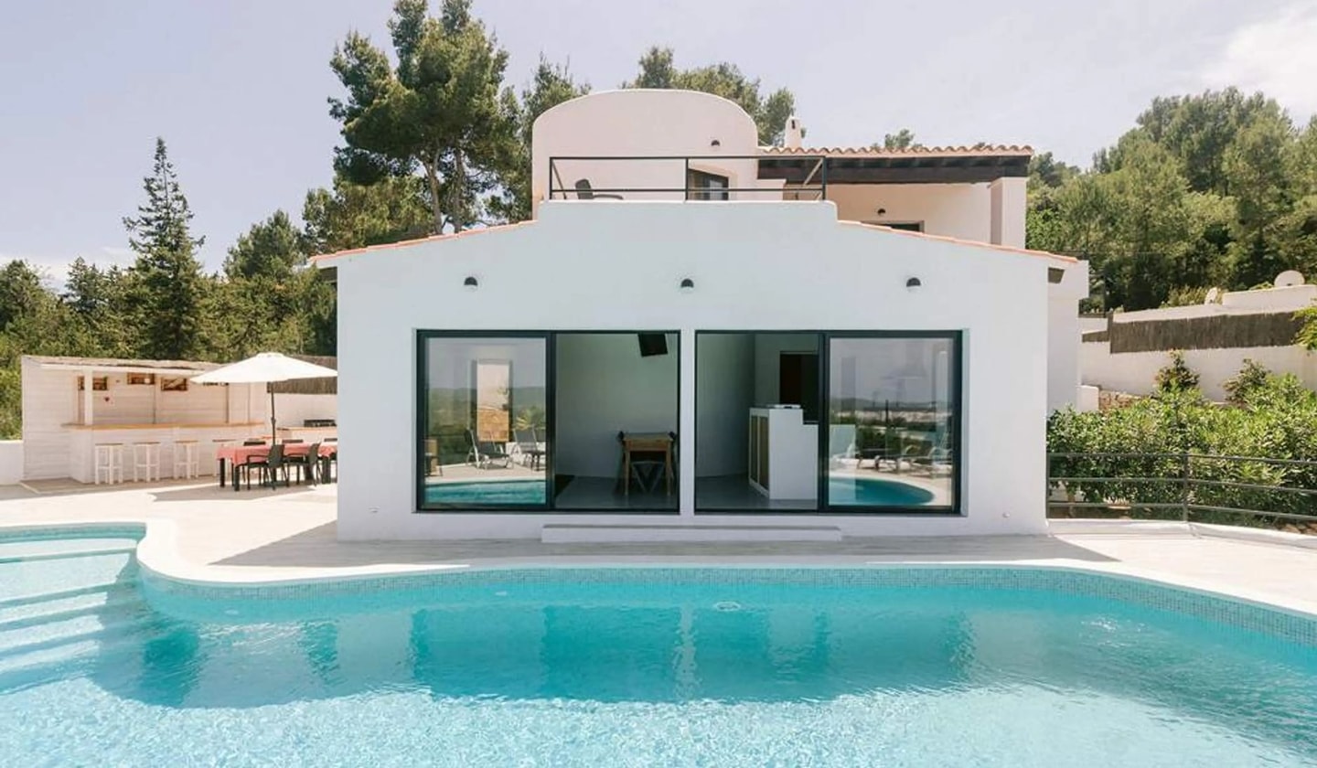 Beach days are easily arranged from this base, with Cala Tarida and Cotton Beach Club, Cala Conta's Sunset Ashram, and Cala Bassa Beach Club all within reach. The airport lies 14 kilometres away, while Ibiza town is 17.5 kilometres distant. Back at the finca, evenings often revolve around the pool bar or the spacious outdoor dining table, with hot and cold outdoor shower facilities adding convenience after sandy beach visits.
