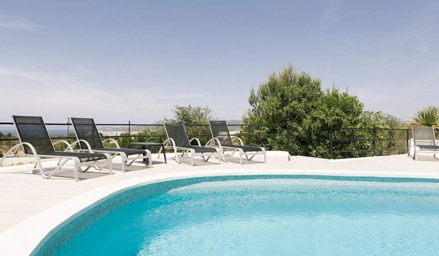 Can Cadiz sits quietly in western Ibiza, where the island's original character remains intact. This traditional finca overlooks the bay of San Antonio, with views that stretch across the water to distant mountains. The property spans 2,000 square metres of walled gardens, complete with terraces, barbecue facilities and a pétanque court. A child-friendly pool takes centre stage, accompanied by its own bar.