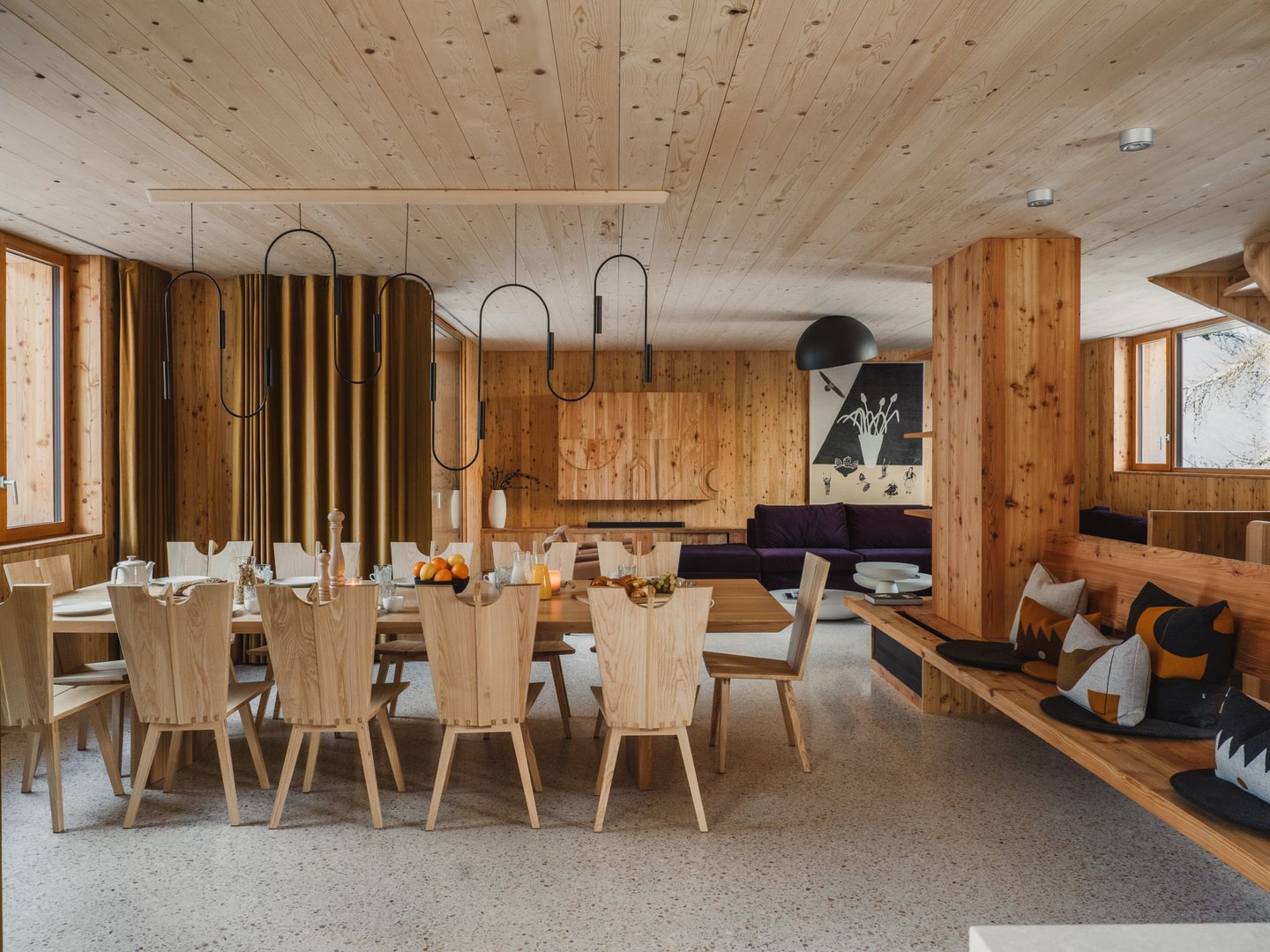 The first floor opens into an expansive living area designed for gathering. Natural stone meets warm timber throughout, creating spaces where groups naturally congregate after mountain days. The architect-owner's vision shows in every detail, from the hand-crafted staircase to the natural stone in the bathrooms. A faux fireplace, Smart TV, fully equipped kitchen and all the practical touches make settling in effortless.