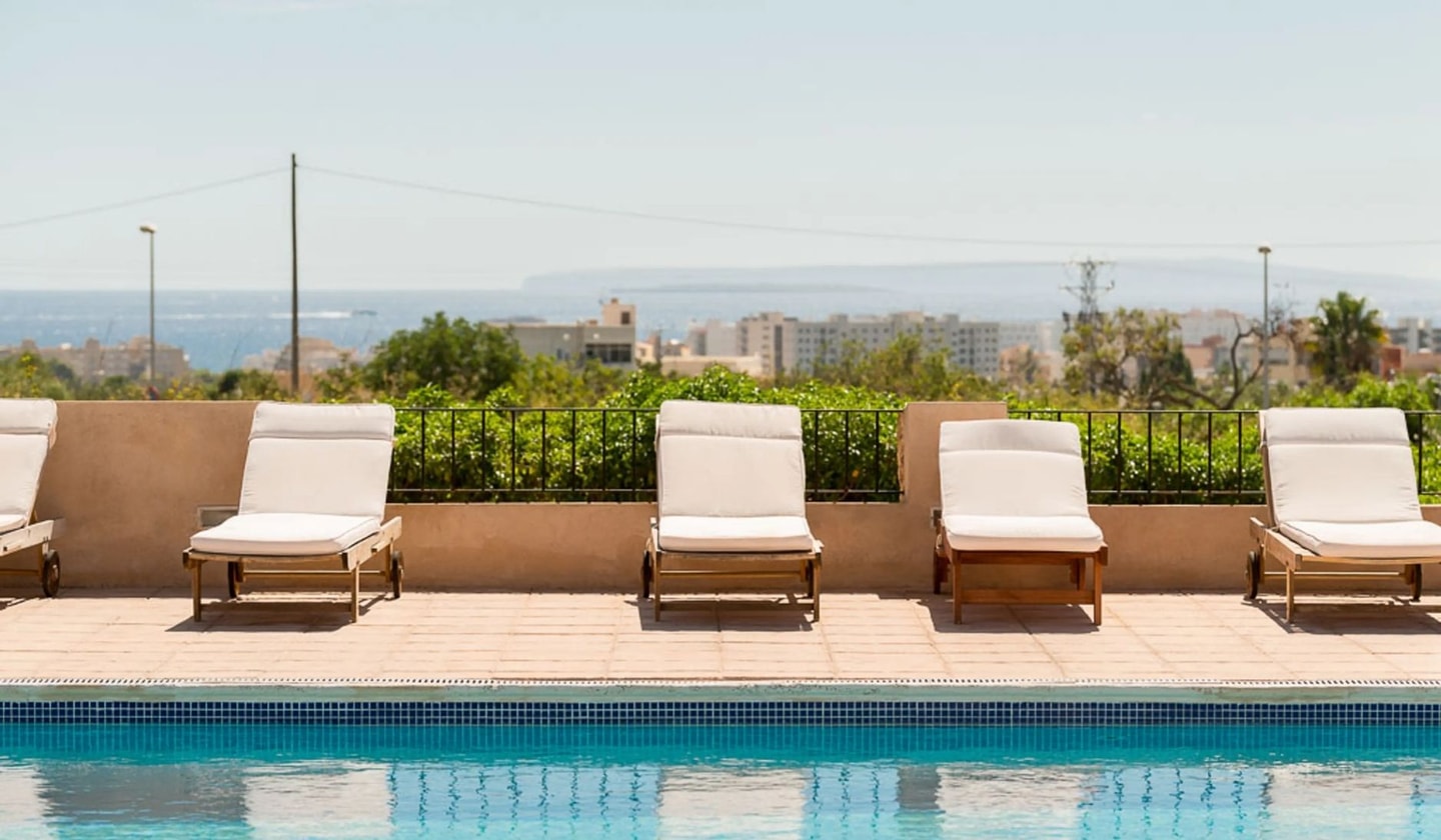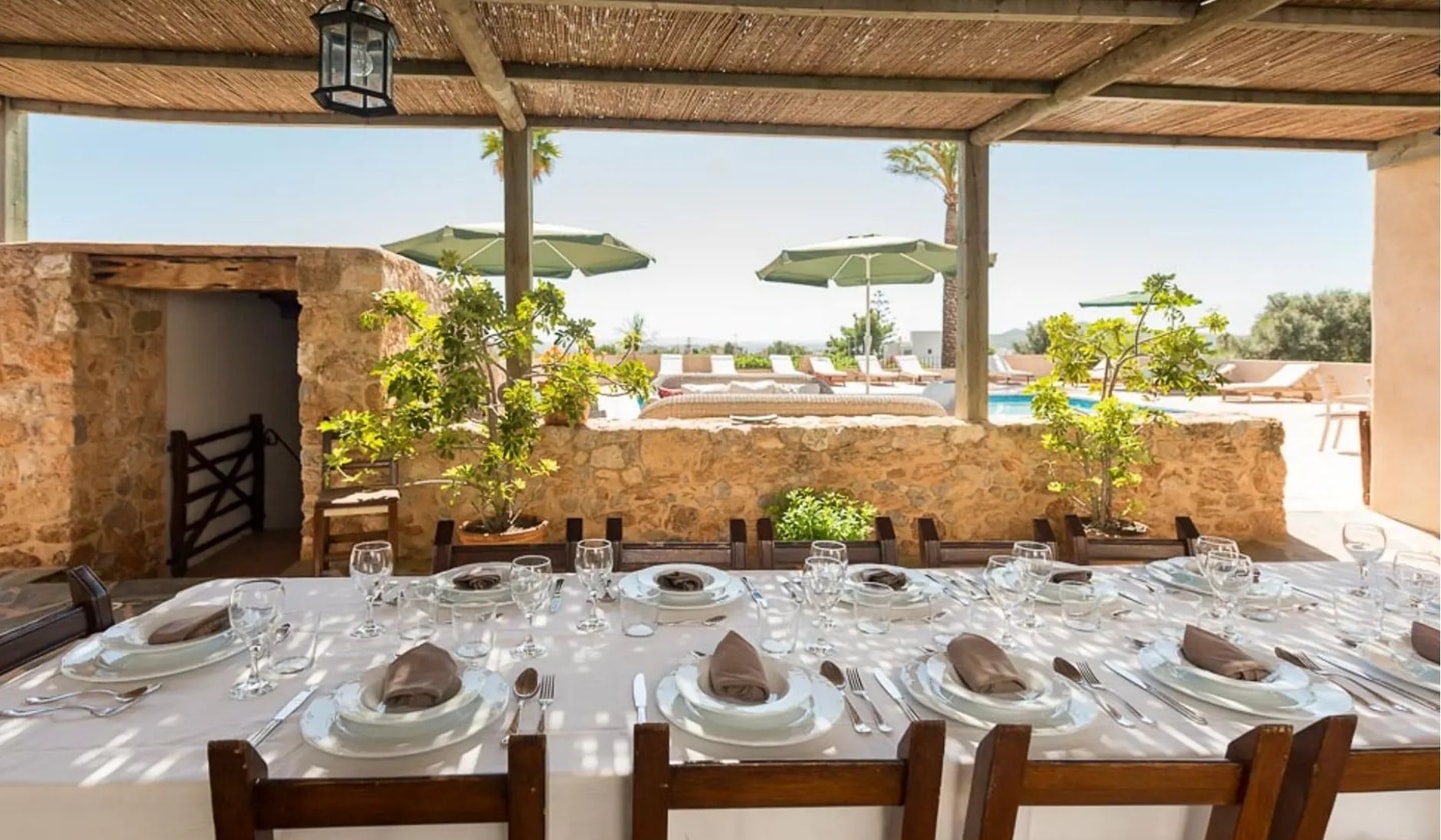 Outside, the pool terrace becomes the natural gathering spot, furnished with wooden pieces for lounging between swims. The barbecue gets plenty of use for alfresco dinners as the sun sets westward. From here, you're perfectly positioned to explore Ibiza Town's restaurants and nightlife, while the protected parkland of Las Salinas and its beaches lie just to the south.