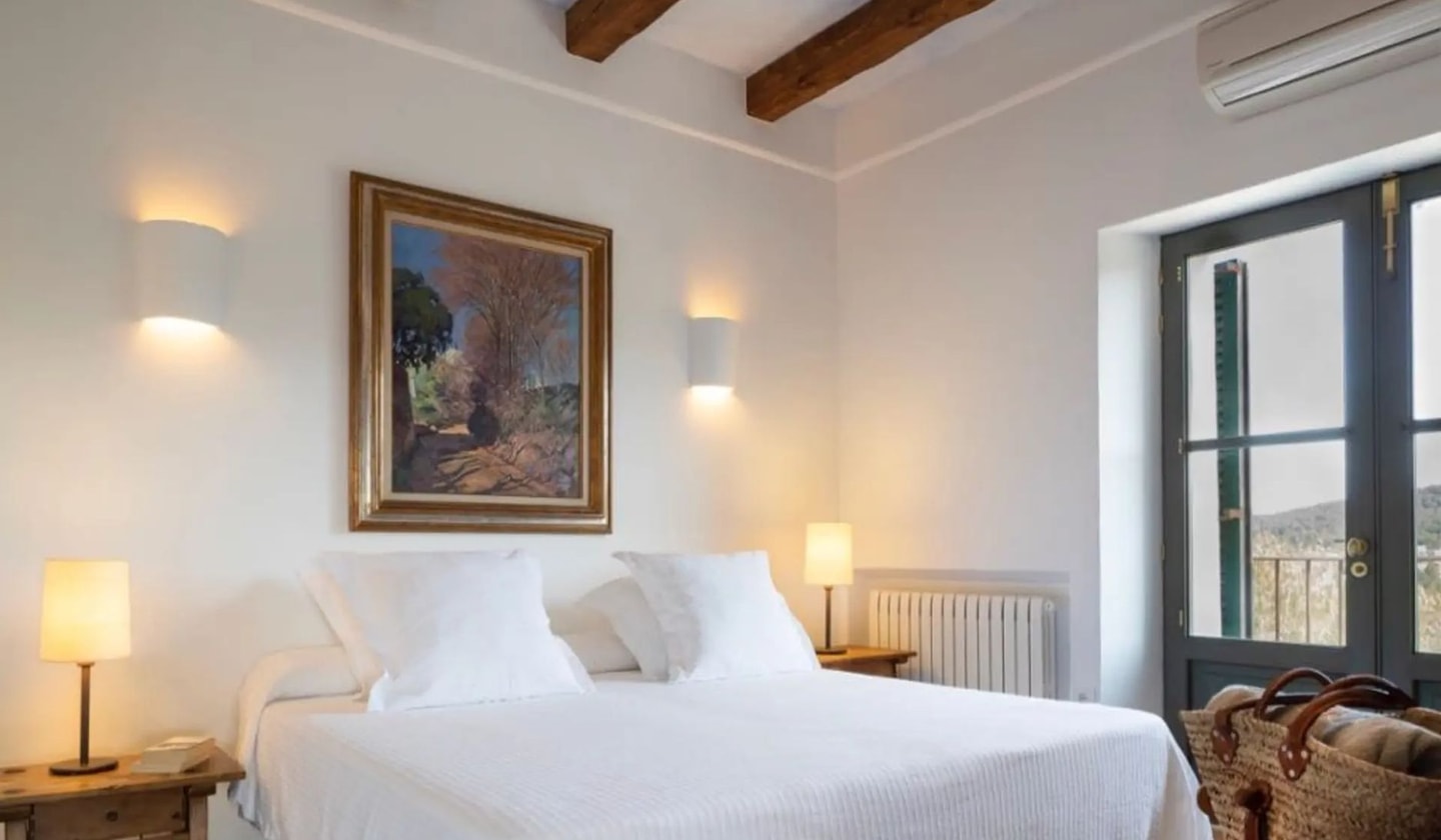Santa Eulària town lies to the east, about 15 minutes from beaches like Niu Blau and Cala Nova. The location puts you within easy reach of restaurants including Bambuddha Grove and Nagai, while maintaining the peace of rural Ibiza. From the first-floor balcony with its lounge seating, the bay views are particularly striking at sunset. The property can be combined with neighbouring Villa Calme for larger groups seeking connected accommodation and is also perfect to organize events like weddings.