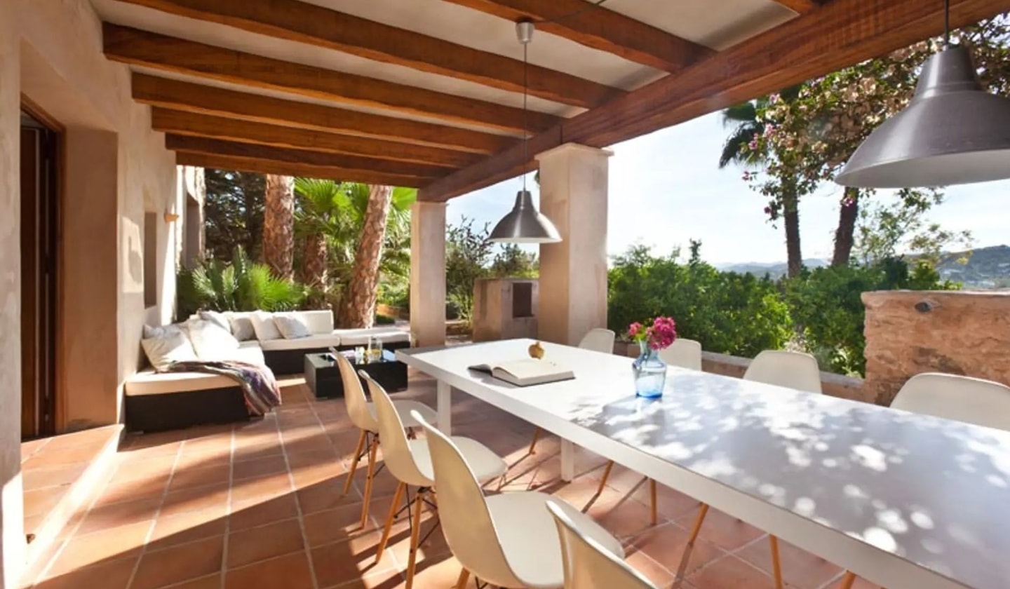 A tiered finca with panoramic bay views, Rafael spreads across multiple levels with separate bungalows tucked between almond trees. Just minutes from three of Ibiza's west coast beaches.