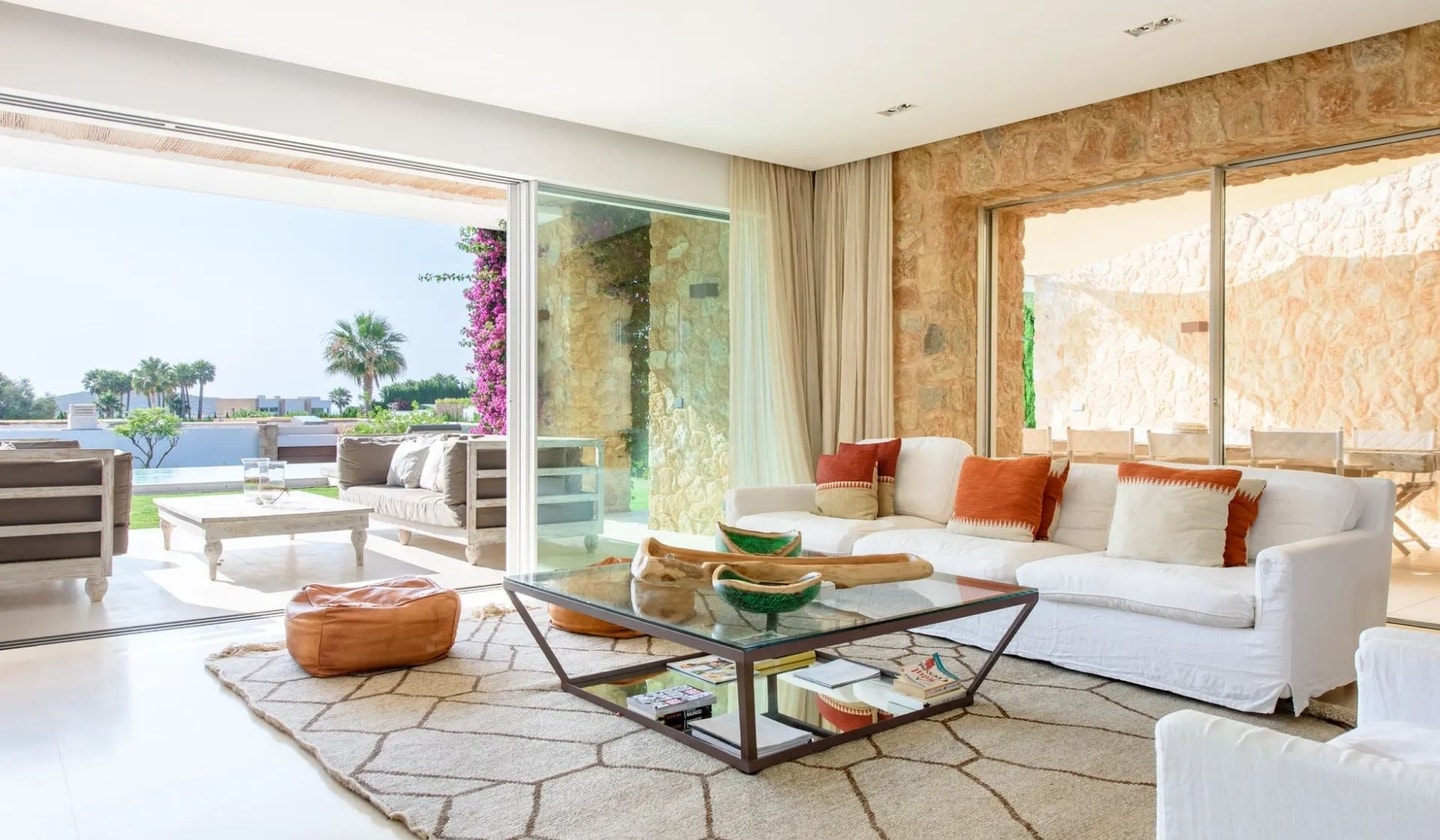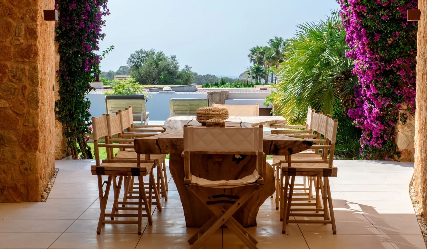 Mornings might start with coffee on the lawn before wandering down to Cala Conta's turquoise waters. The nearby beaches of Cala Tarida and Cala Bassa, home to Cotton Beach Club and other waterfront venues, lie within a short drive. From your terrace, the Mediterranean stretches westward, promising those famous Ibizan sunsets that paint the sky each evening. Please note that construction work may occur in the area outside peak season.