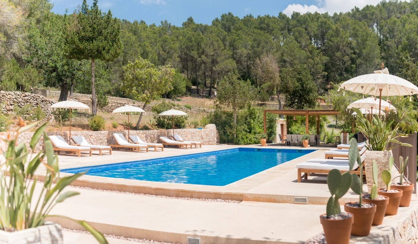 From this peaceful base, the beaches of Ibiza's northern coast lie just fifteen minutes away, with Benirrás cove amongst the closest options. San Juan village provides local restaurants and shops within easy reach, whilst the airport remains a convenient 25-minute drive. Days here balance poolside relaxation with coastal explorations, returning each evening to the tranquility of your woodland surroundings where only birdsong breaks the silence.
