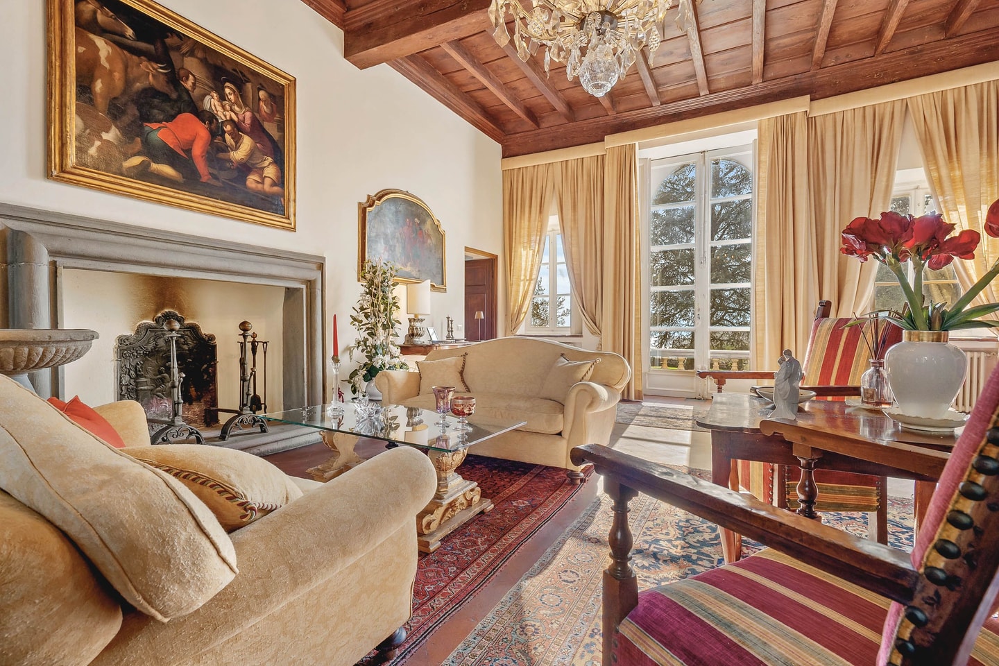 Outside, the private landscaped park frames multiple spots for dining beneath Tuscan skies. The 20-by-4-metre pool occupies its own secluded corner, surrounded by sun loungers and parasols. A pool house contains everything needed for long afternoons by the water, including a bathroom, changing facilities and a small kitchen. The property sits entirely enclosed, offering complete privacy whilst panoramic views stretch across the Lucca countryside.