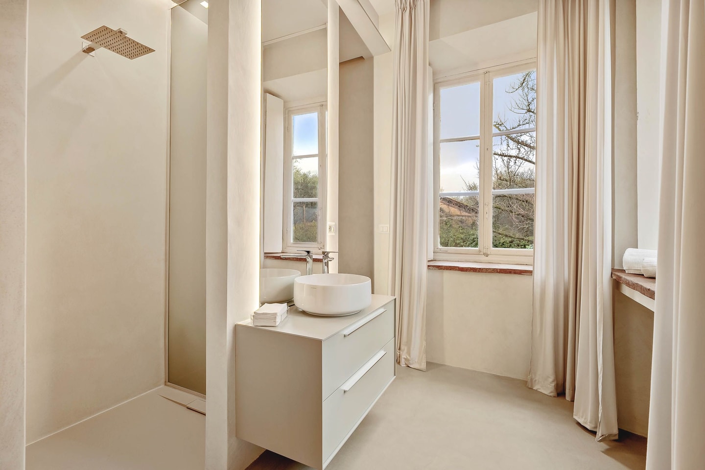 Seven kilometres from Lucca, a 17th-century villa rises from Tuscan hillsides where olive groves meet ancient trees. Villa Paradiso welcomes twelve guests across six bedrooms, each paired with its own bathroom. The 2022 restoration has preserved the building's historic character whilst introducing air conditioning throughout and thoughtful updates that enhance rather than overwhelm the original architecture.
