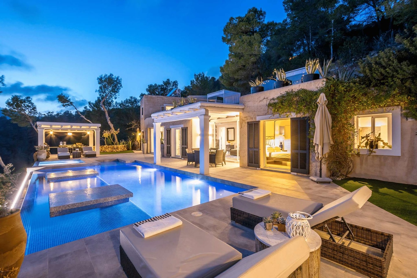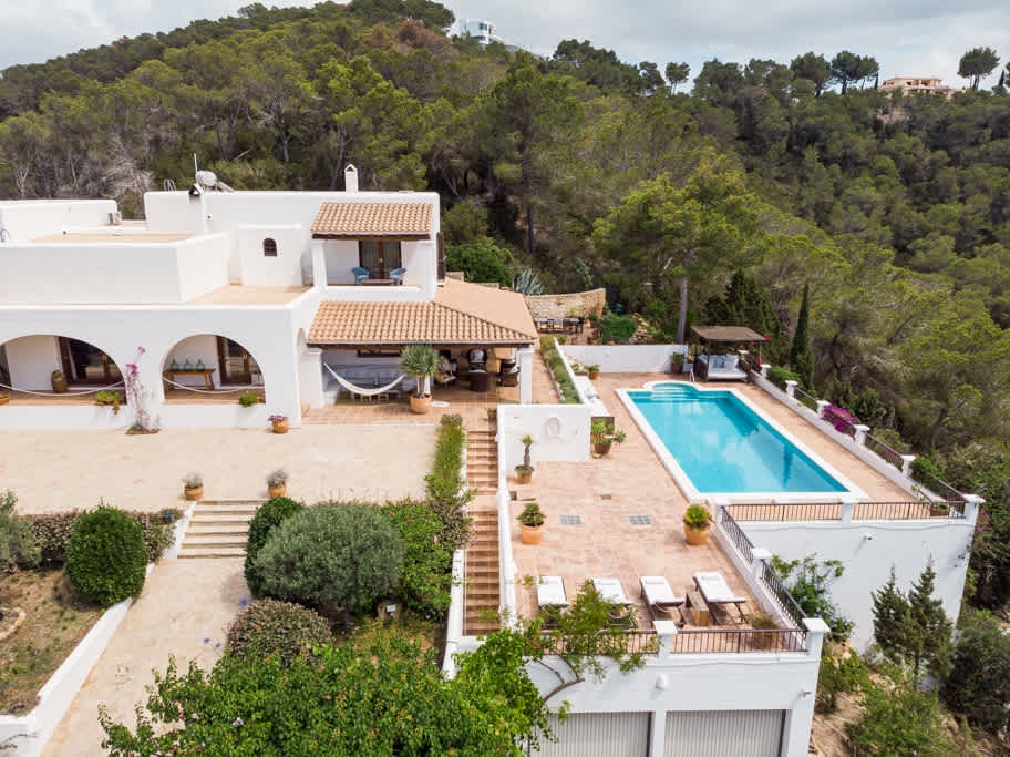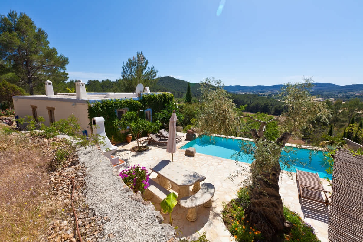 - Infinity pool views across Ibiza's hills and sea