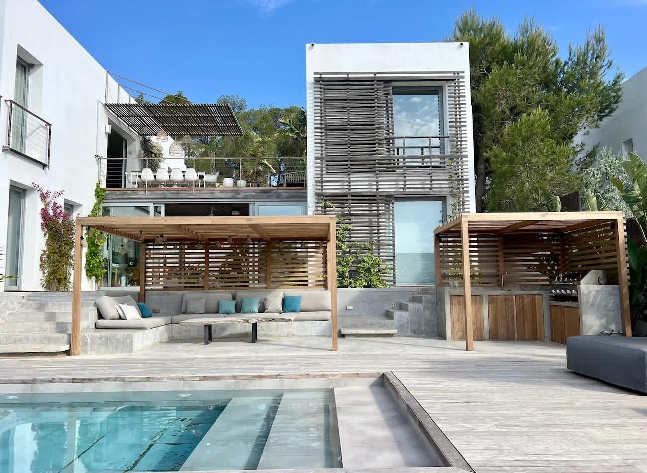- Private pool bar facing San Antonio’s sunset coast