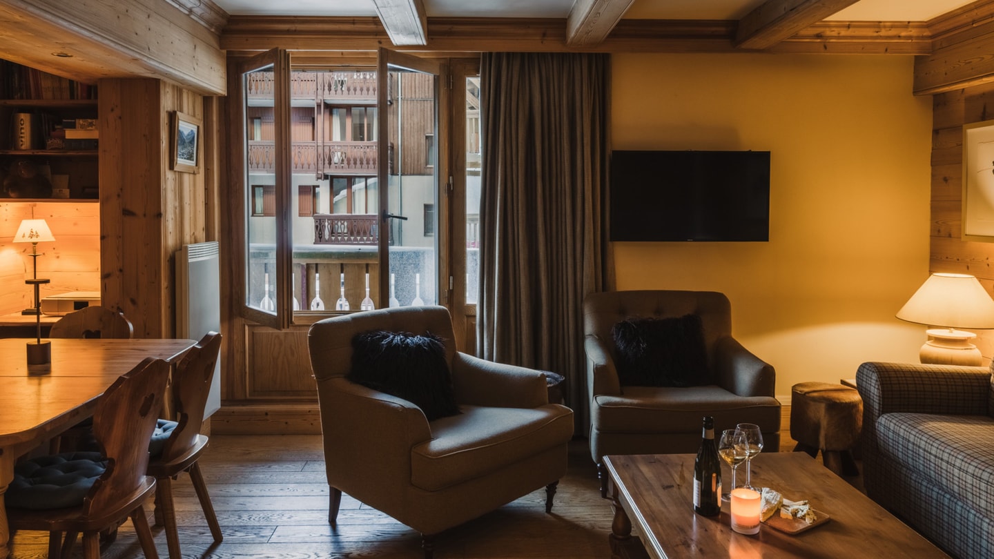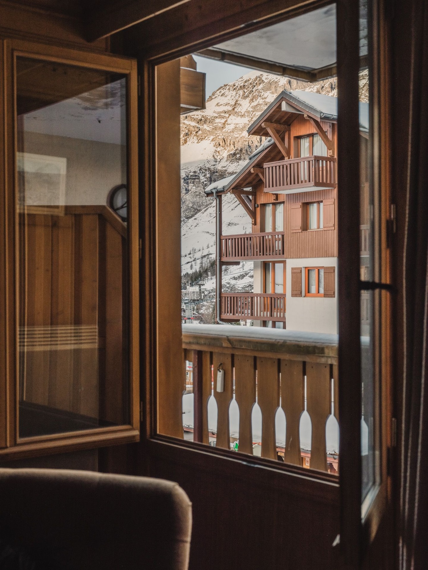 Een goed gelegen appartement in Val d'Isère aan de voet van de pistes, met snelle toegang tot de liften van Solaise en Bellevarde. Woonkamer op de tweede verdieping met balkon en uitzicht op de bergen.