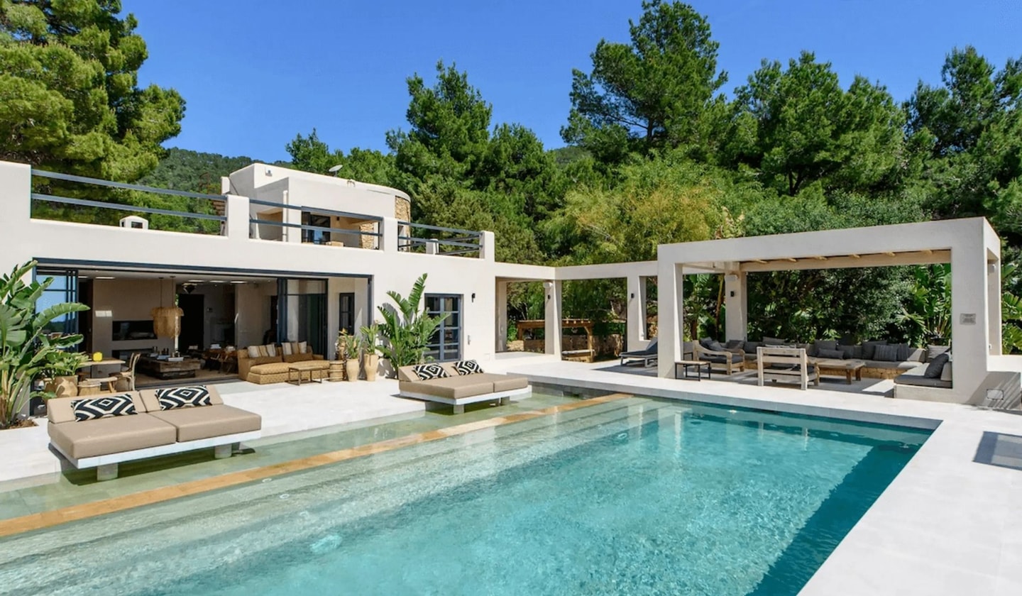 Zes slaapkamers verspreid over een door een architect ontworpen terrein in Cala Jondal, compleet met tennisbaan, buitenfitnessruimte en twee aaneengesloten zwembaden. Op slechts enkele minuten van het strand en tien minuten van de luchthaven.
