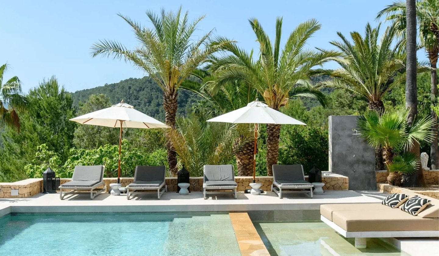 De hoofdslaapkamer bevindt zich op de bovenverdieping en heeft toegang tot een privédakterras en een dompelbad. Drie extra slaapkamers bevinden zich onder het zwembadniveau, elk met een eigen ingang en een eigen badkamer. Twee met elkaar verbonden zwembaden vormen het middelpunt van de buitenruimte, met ondiepe delen die ideaal zijn voor kinderen. Op verzoek kan een zwembadnet worden geïnstalleerd voor extra gemoedsrust.