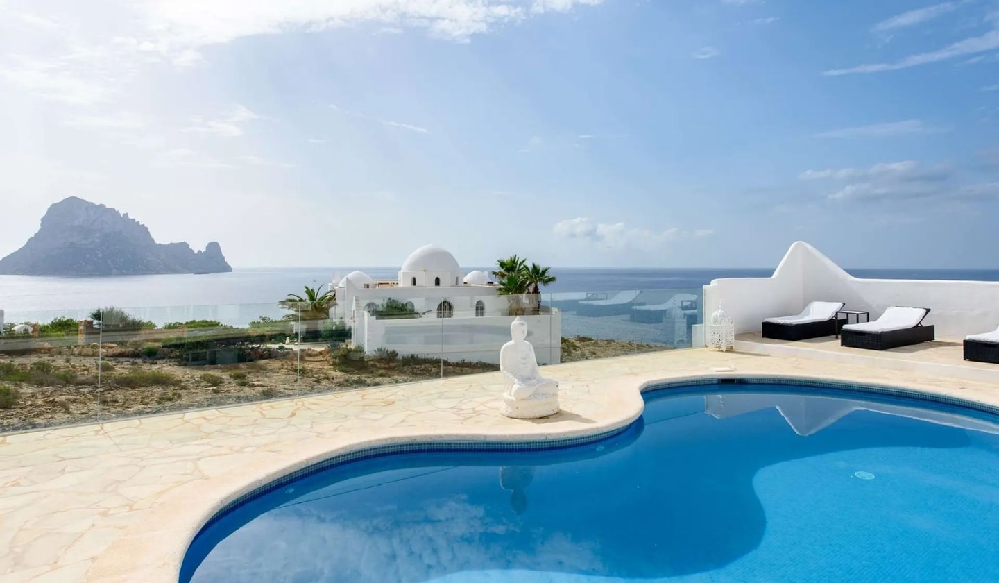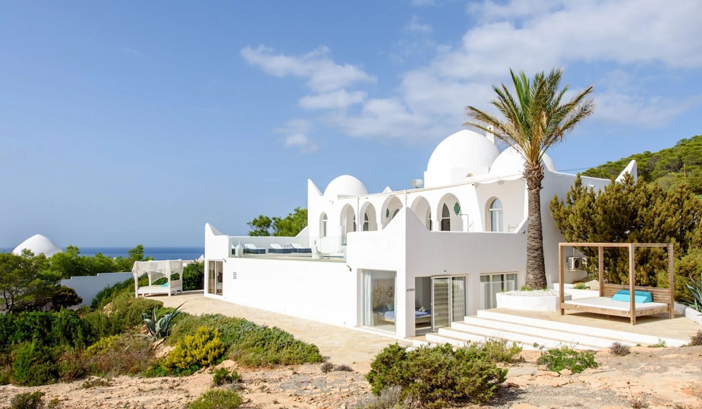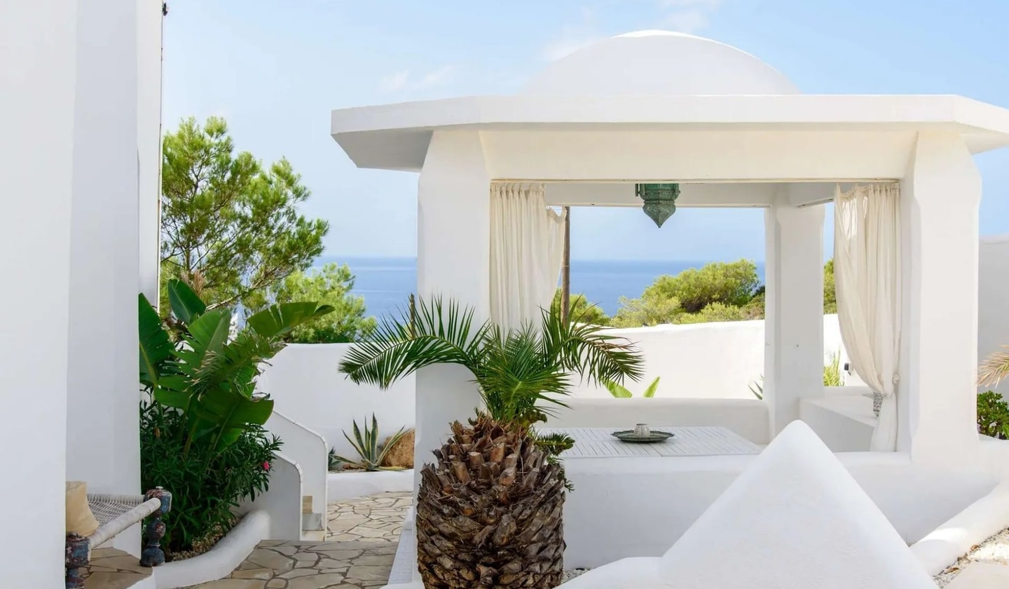 Villa Marrakech brengt een vleugje Noord-Afrikaanse charme naar de westkust van Ibiza, waar Moorse design en mediterrane uitzichten samenkomen. Deze woning met zeven slaapkamers ligt boven Cala Carbó, met het beroemde silhouet van Es Vedrà aan de horizon. Binnenin kroont een opvallende witte koepel de belangrijkste leefruimte, waardoor een luchtige ruimte ontstaat die de hele dag door met licht speelt. De oosterse accenten zijn subtiel maar effectief, van gebeeldhouwde details tot de gebogen bogen die elke kamer omlijsten.