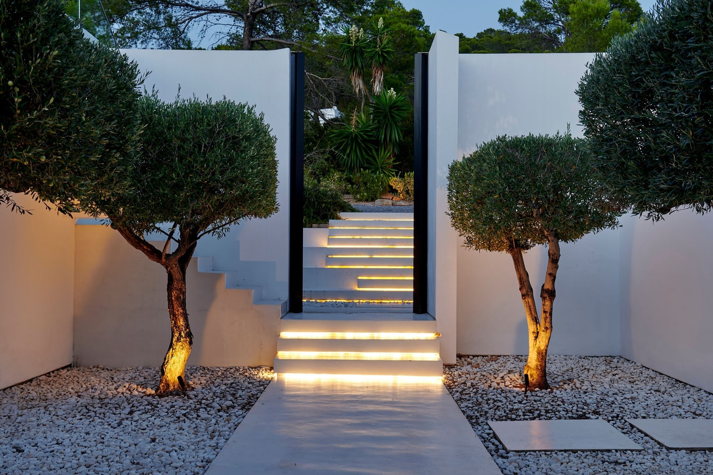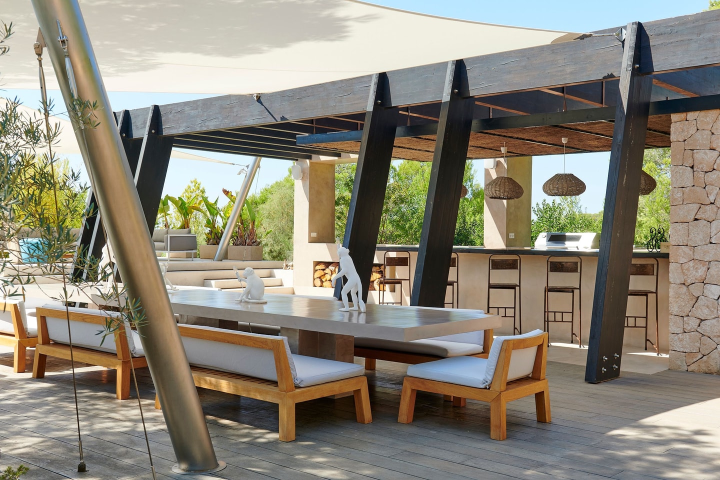 De dagen spelen zich af tussen strandclubs en verborgen baaien. Cotton Beach Club ligt bij Cala Tarida, terwijl Cala Conta met Sunset Ashram en Cala Bassa Beach Club op korte rijafstand liggen. De mediterrane tuin, met olijfbomen en twee watervallen, vormt een rustgevend contrast met het strandleven. Voor wie actief wil zijn, zijn er mountainbikes en een tafeltennistafel. Na zonsondergang zorgt de sfeervolle verlichting van de villa voor een totaal andere ambiance.