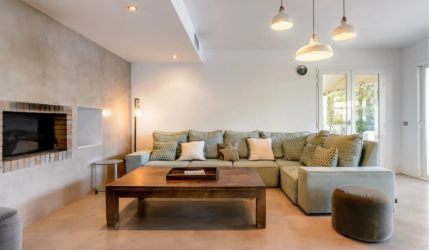 Vanaf hier ligt Ibiza-stad op slechts vijftien minuten rijden met de auto en de luchthaven op twintig minuten. Santa Eulària zelf biedt een rustiger tempo dan sommige van de drukkere plekken op het eiland, met goede restaurants en lokale markten binnen handbereik. De ochtenden kunnen beginnen met een wandeling naar het strand of een duik in het zwembad, terwijl gasten 's avonds vaak op het terras zitten om te kijken hoe het licht over de omliggende heuvels verandert, terwijl de voorbereidingen voor het diner beginnen in de goed gevulde keuken.