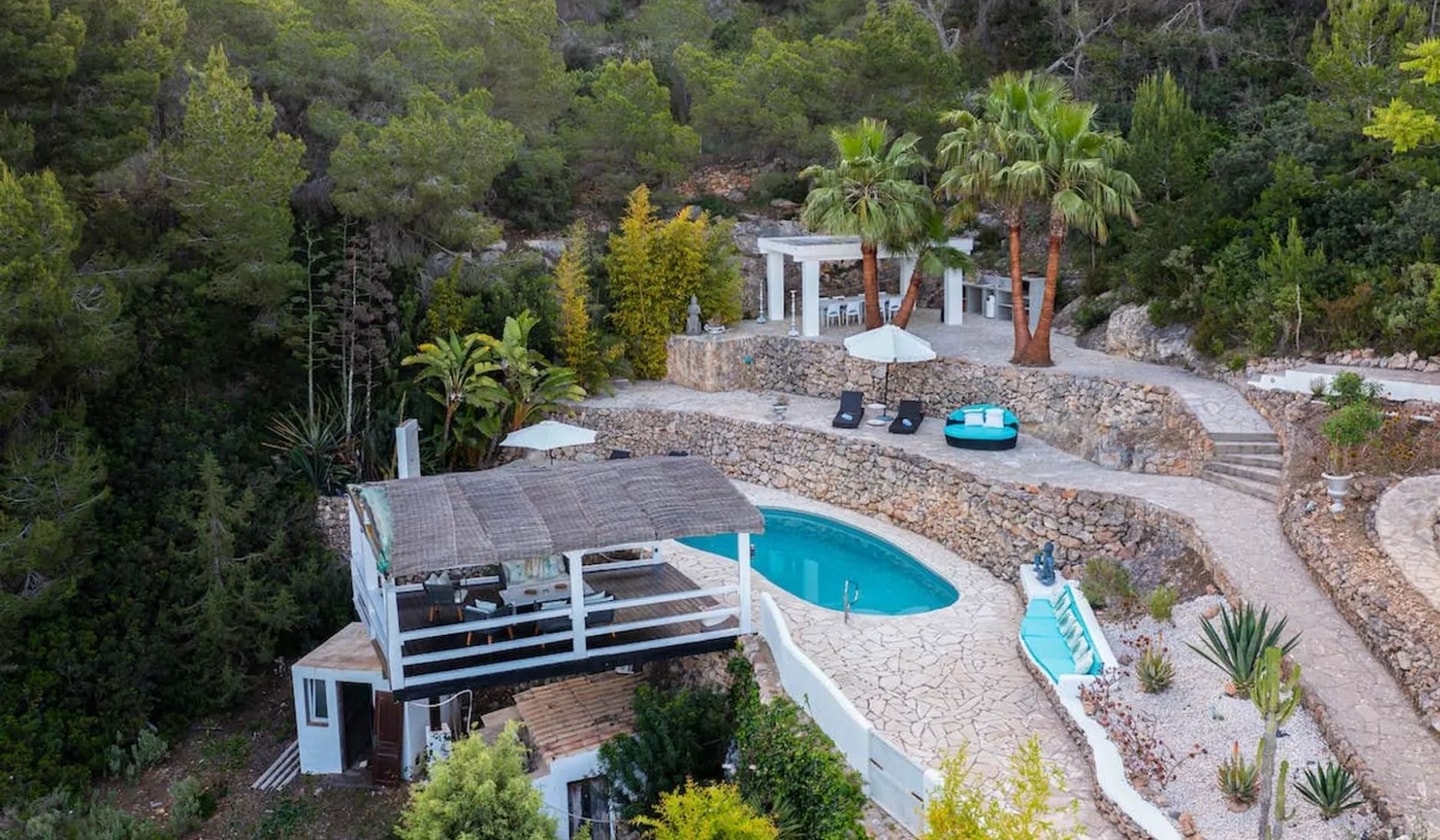 Villa D'hort ligt op een van de meest spectaculaire plekken van Ibiza, op de heuvel tussen Cala d'Hort en Cala Carbó. Vanaf dit hoge punt heb je een geweldig uitzicht over beide baaien, met Es Vedrà dat als een oude wachter uit de zee oprijst. Om er te komen moet je een steile weg nemen die de heuvel op slingert. Dit kan met een gewone auto, maar een 4x4 maakt de reis wel wat comfortabeler.