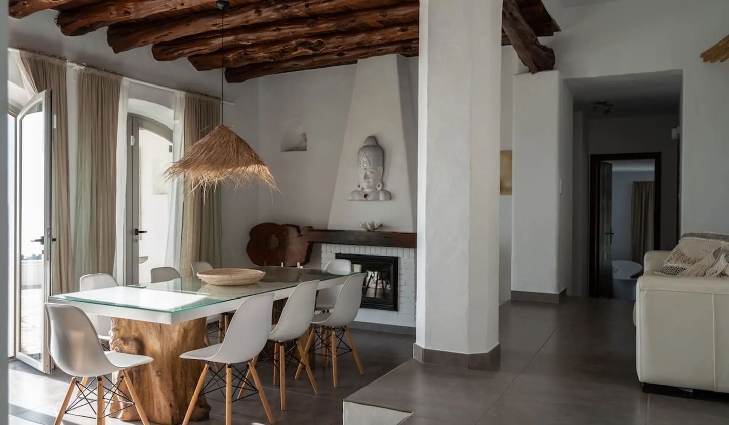 De ligging op het westen maakt van de avonden iets speciaals, terwijl de zon naar Es Vedrà zakt voordat ze onder de horizon verdwijnt. Van dit dagelijkse spektakel kun je genieten vanaf verschillende uitkijkpunten rondom het pand, of dat nu vanaf het terras bij de eetkamer is, vanaf de ligstoelen bij het zwembad of vanuit een van de meer intieme zithoeken. Door de trapsgewijze indeling die deze magische uitkijkpunten creëert, moeten gezinnen met jonge kinderen extra voorzichtig zijn bij het verplaatsen tussen de verschillende verdiepingen.