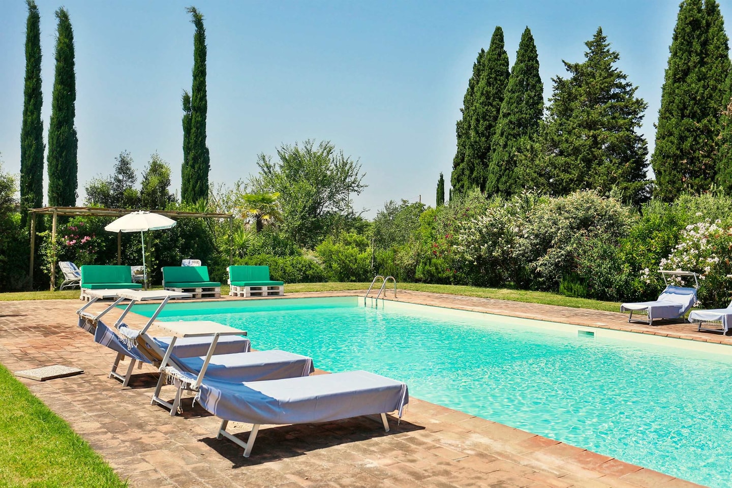 Buiten biedt het zwembad van 14 bij 7 meter verkoeling tijdens warme middagen. De tuinen staan vol met rozen, lavendel en rozemarijn, terwijl een eigen moestuin zorgt voor verse producten. Meerdere terrassen bieden plekjes om buiten te eten met uitzicht op de Monte Amiata. Mary, de huishoudster, helpt met koken en dagelijkse dingen, waardoor je verblijf hier super soepel verloopt. Kleine huisdieren zijn welkom, maar er lopen ook twee katten rond in de buitenruimtes.